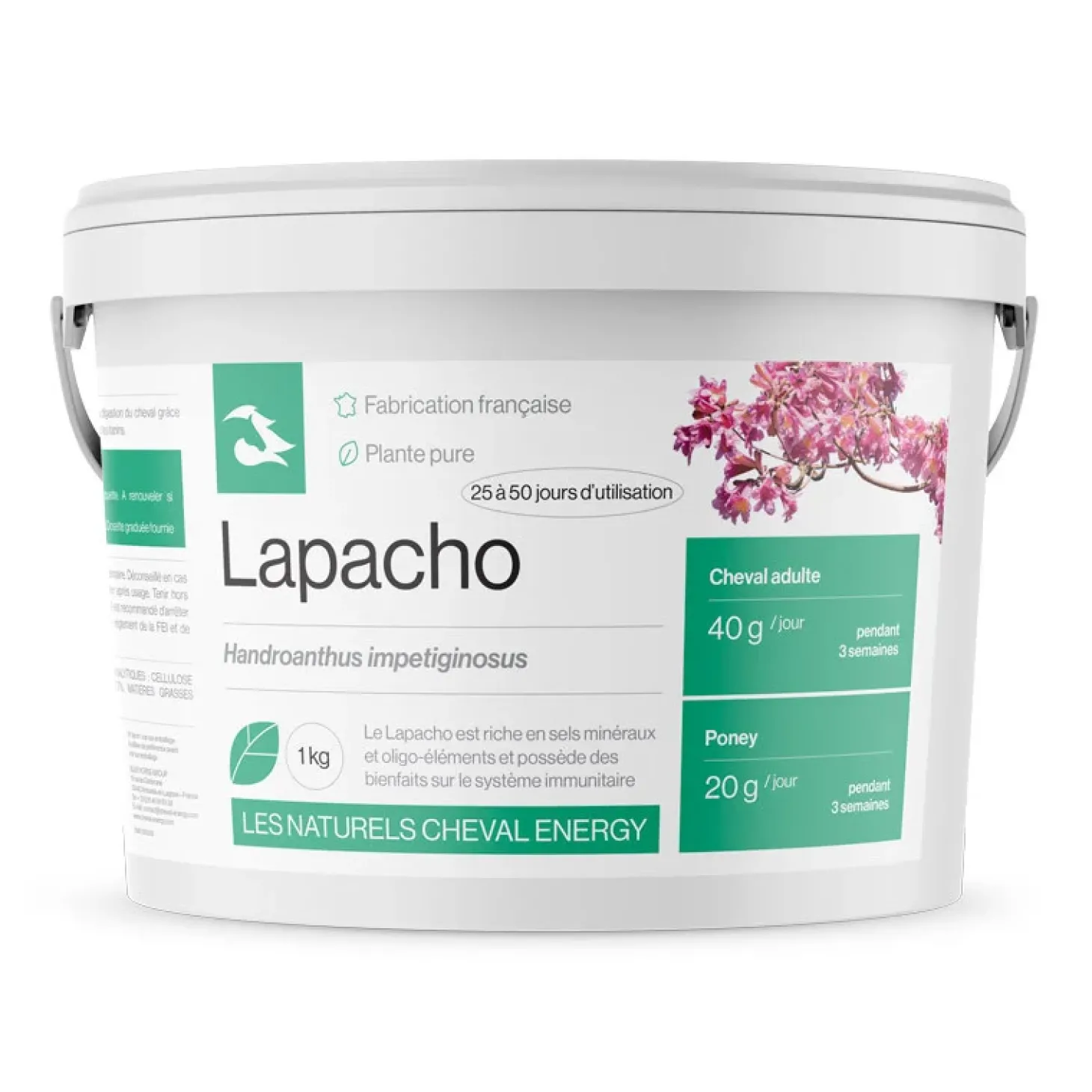 Le Lapacho de Cheval Energy, également connu sous le nom « d’Arbre de vie », est un complément alimentaire 100% naturel issu de l’écorce du Handroanthus impetiginosus, un arbre d’Amérique du Sud. Traditionnellement surnommé « Tajibo » ou « celui qui tue les maux » par les Incas, il est réputé pour sa richesse exceptionnelle en sels minéraux et sa capacité à renforcer les défenses naturelles du cheval.