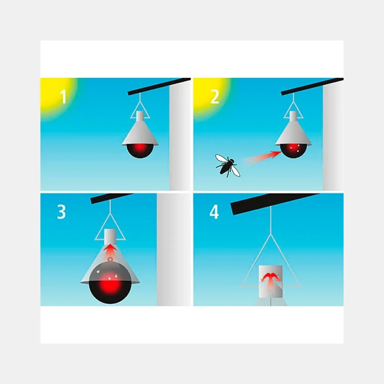 – le soleil chauffe la boule noire placée au centre du piège,