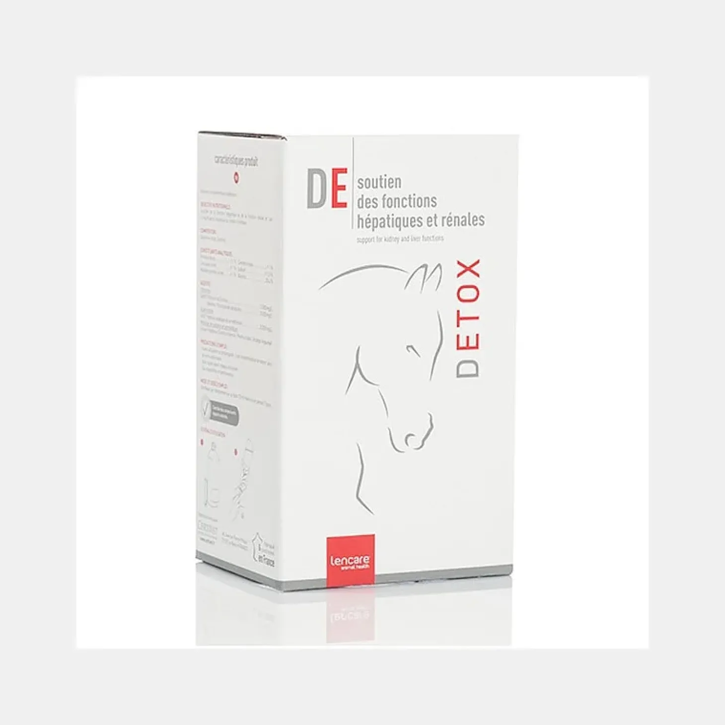 Detoxde Lencare, formulé à base d’extraits de plantes, est destiné au soutien du foie et des reins du cheval.